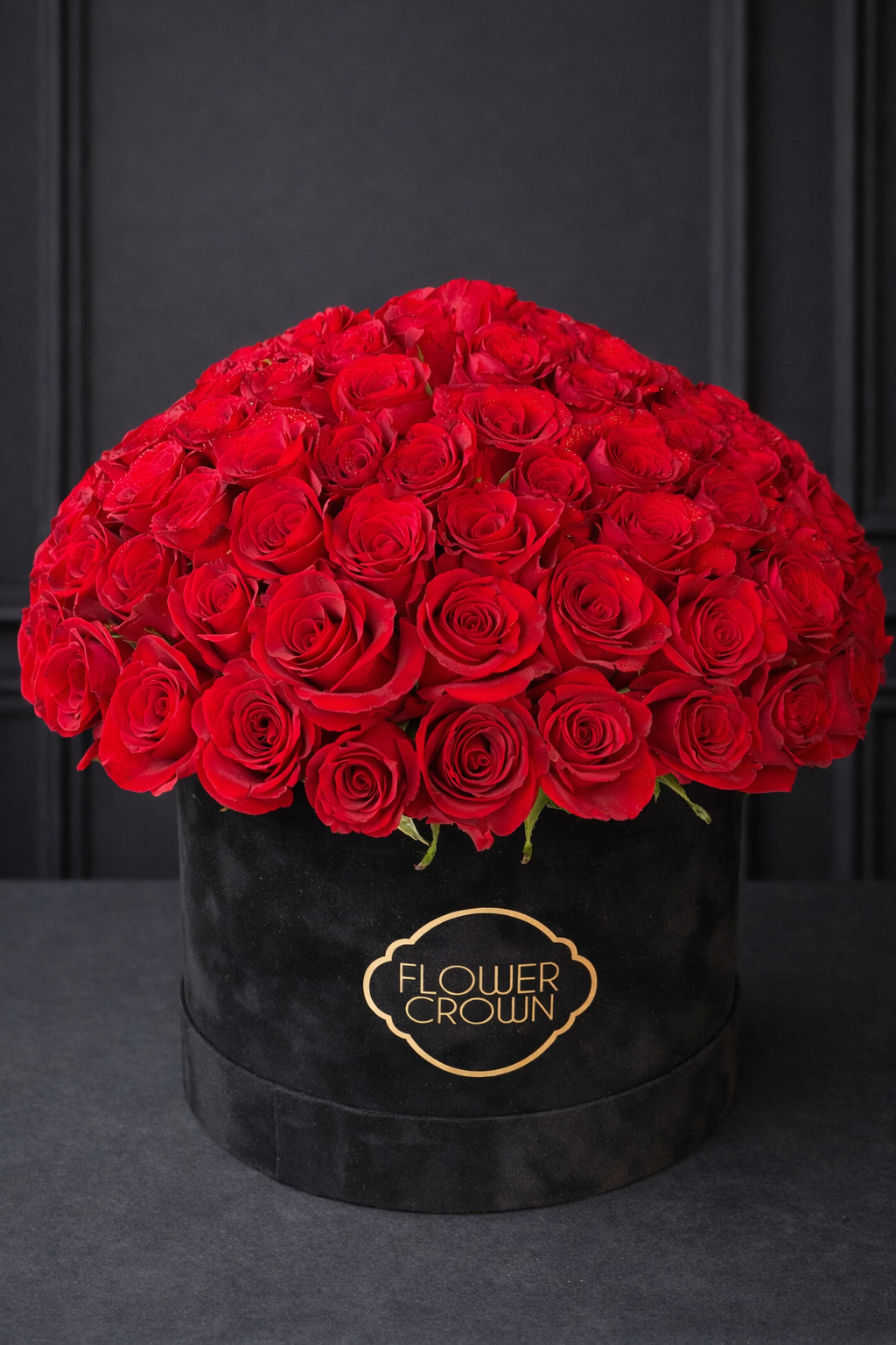 Large velvet box with 100 roses
